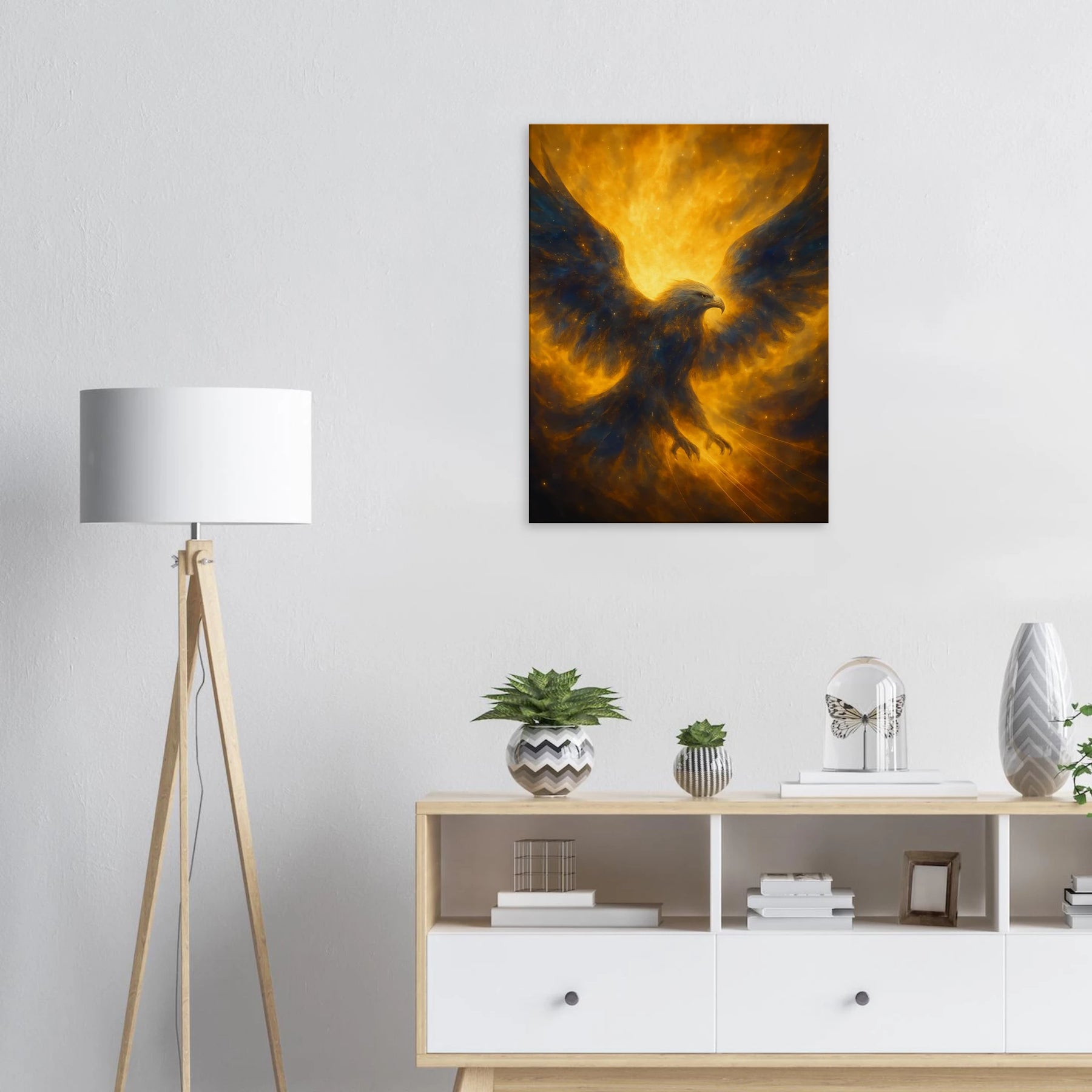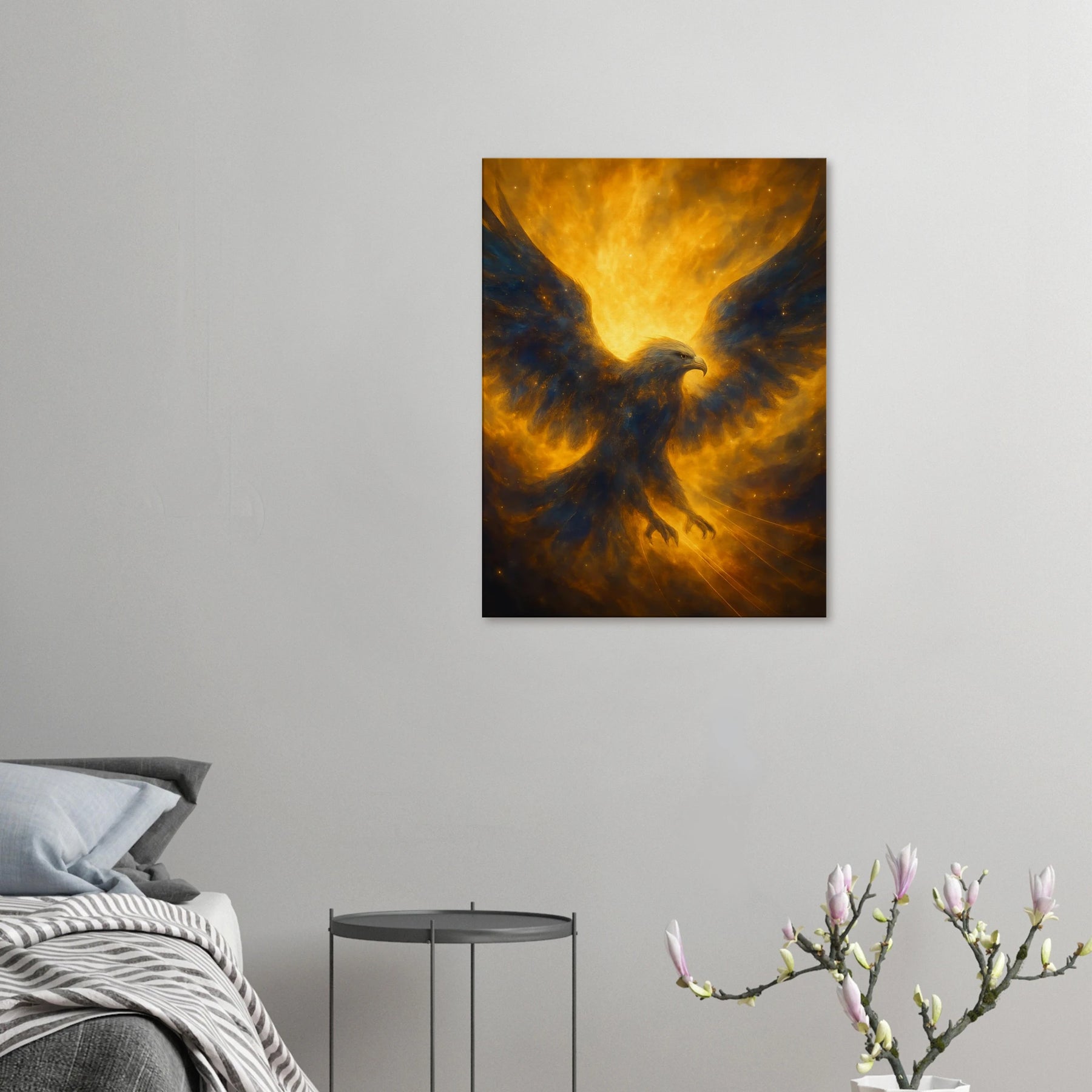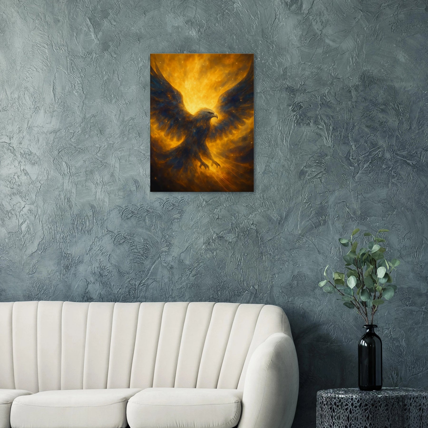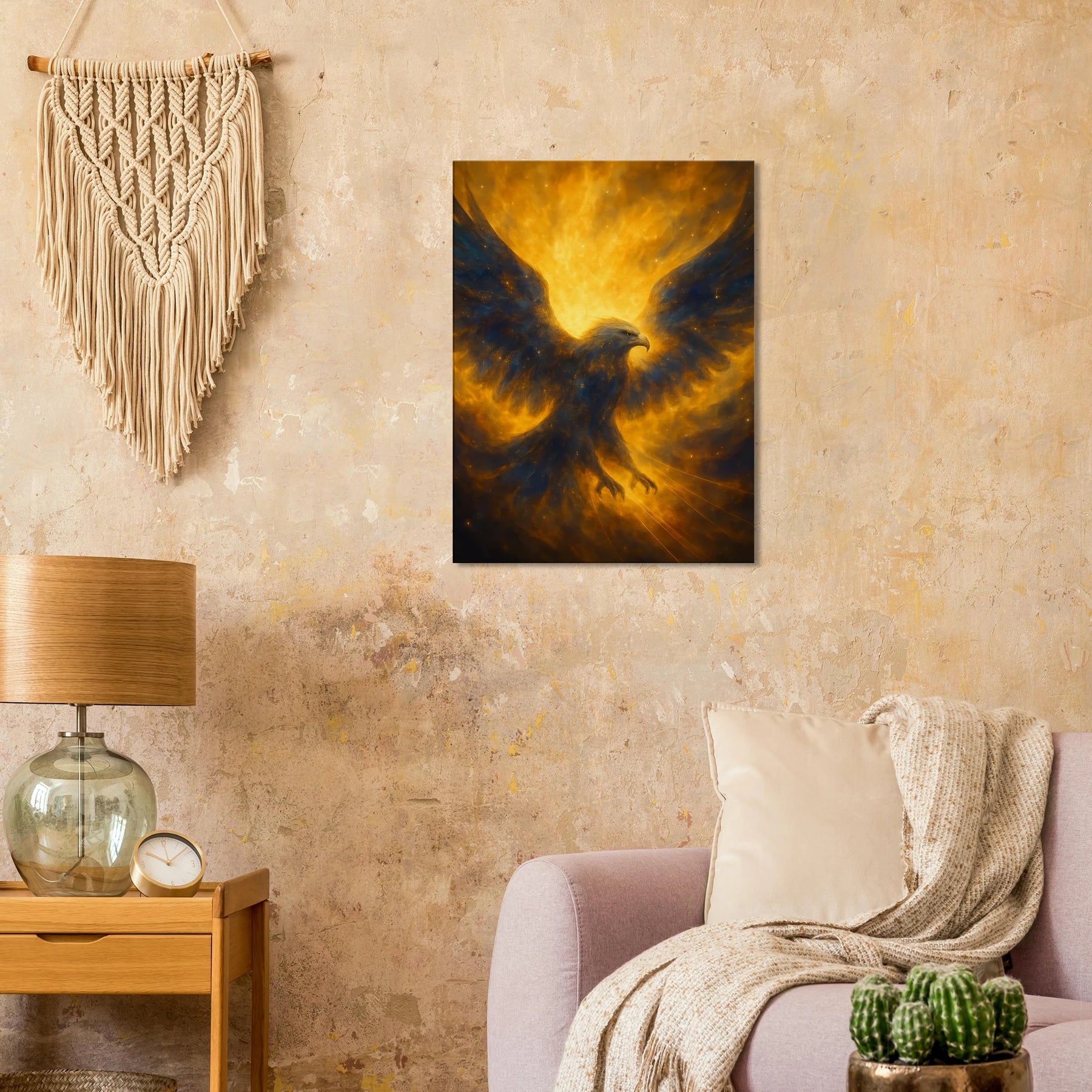 Beim Anblick dieses leuchtenden Wesens, das sich aus einem Feuermeer von Sternen erhebt, spürst du etwas in dir aufsteigen. Vielleicht eine Erinnerung an Mut. Vielleicht eine Sehnsucht nach Weite. Vielleicht der Wunsch, endlich loszufliegen – innerlich, geistig, emotional. Es schafft eine Atmosphäre voller Größe, Hoffnung und Licht. Ideal für Räume, die Inspiration atmen sollen – dein Arbeitszimmer, dein Wohnzimmer, deine persönliche Heldenhöhle.