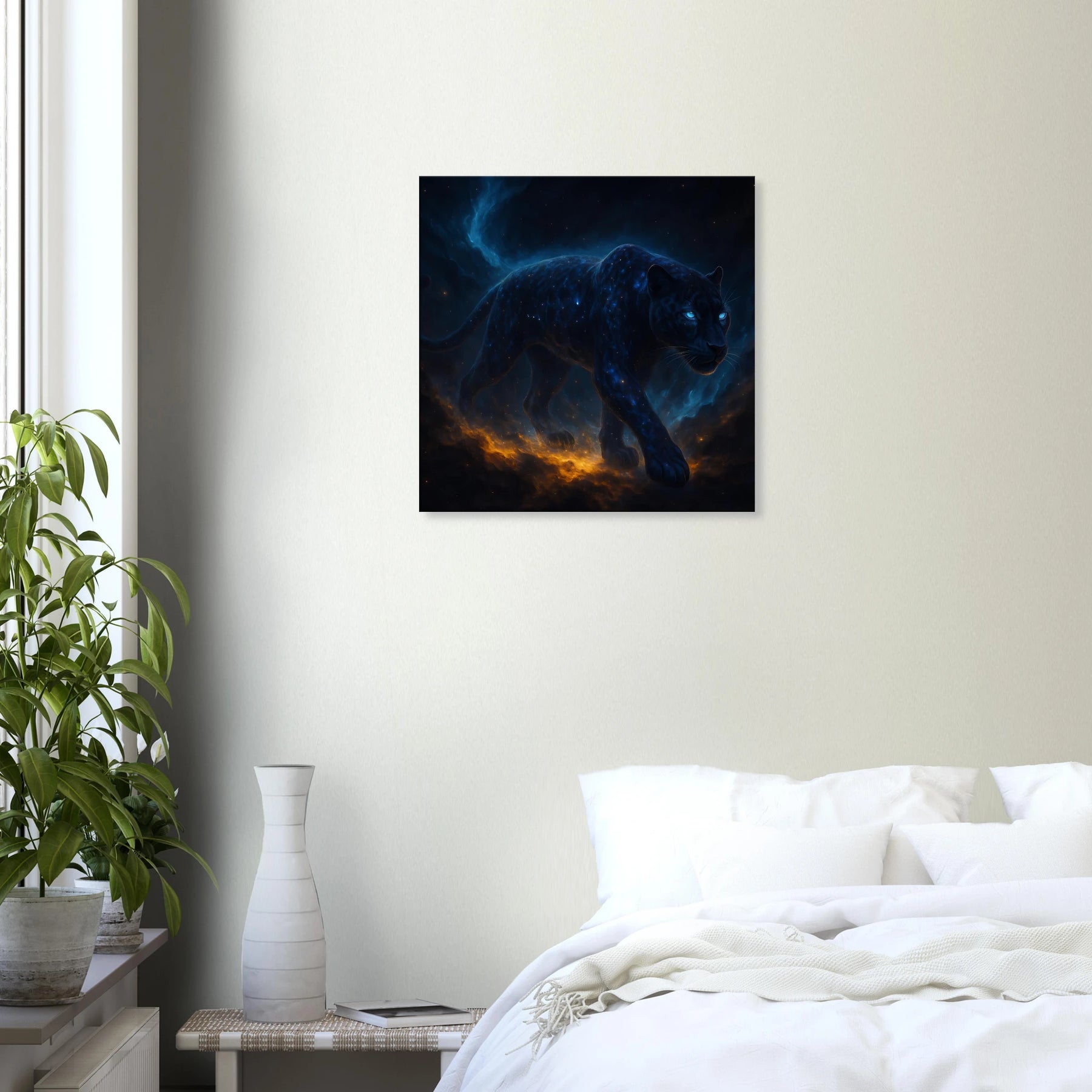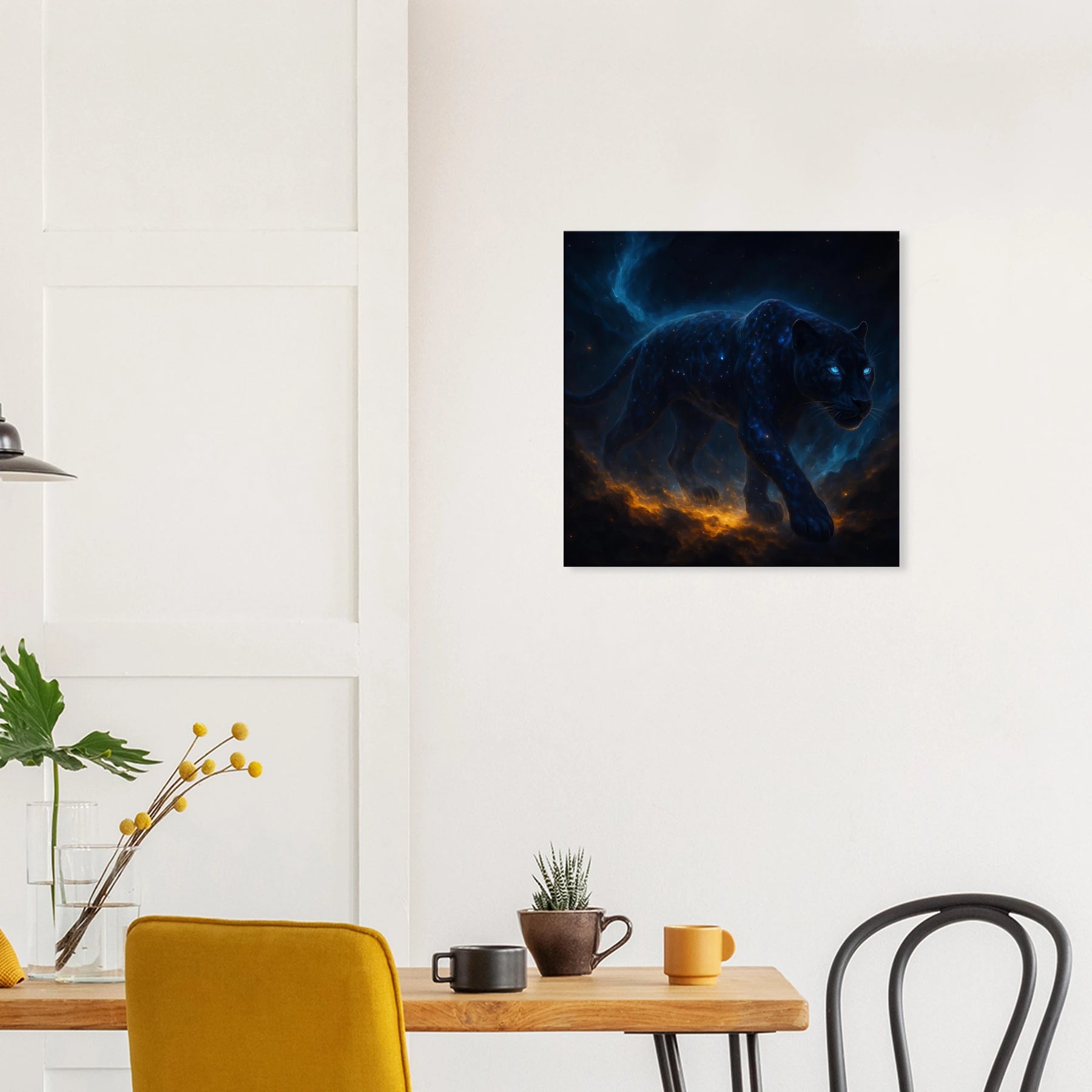 In der endlosen Weite des Kosmos schleicht eine Gestalt, kraftvoll und geheimnisvoll. Galactic Prowler ist mehr als ein Bild – es ist ein Blick in eine andere Realität, in der Anmut und Stärke in vollkommener Harmonie verschmelzen. Der Panther, aus Sternenstaub geboren, durchbricht die Dunkelheit mit leuchtend blauen Augen, als würde er deine tiefsten Träume erkennen.