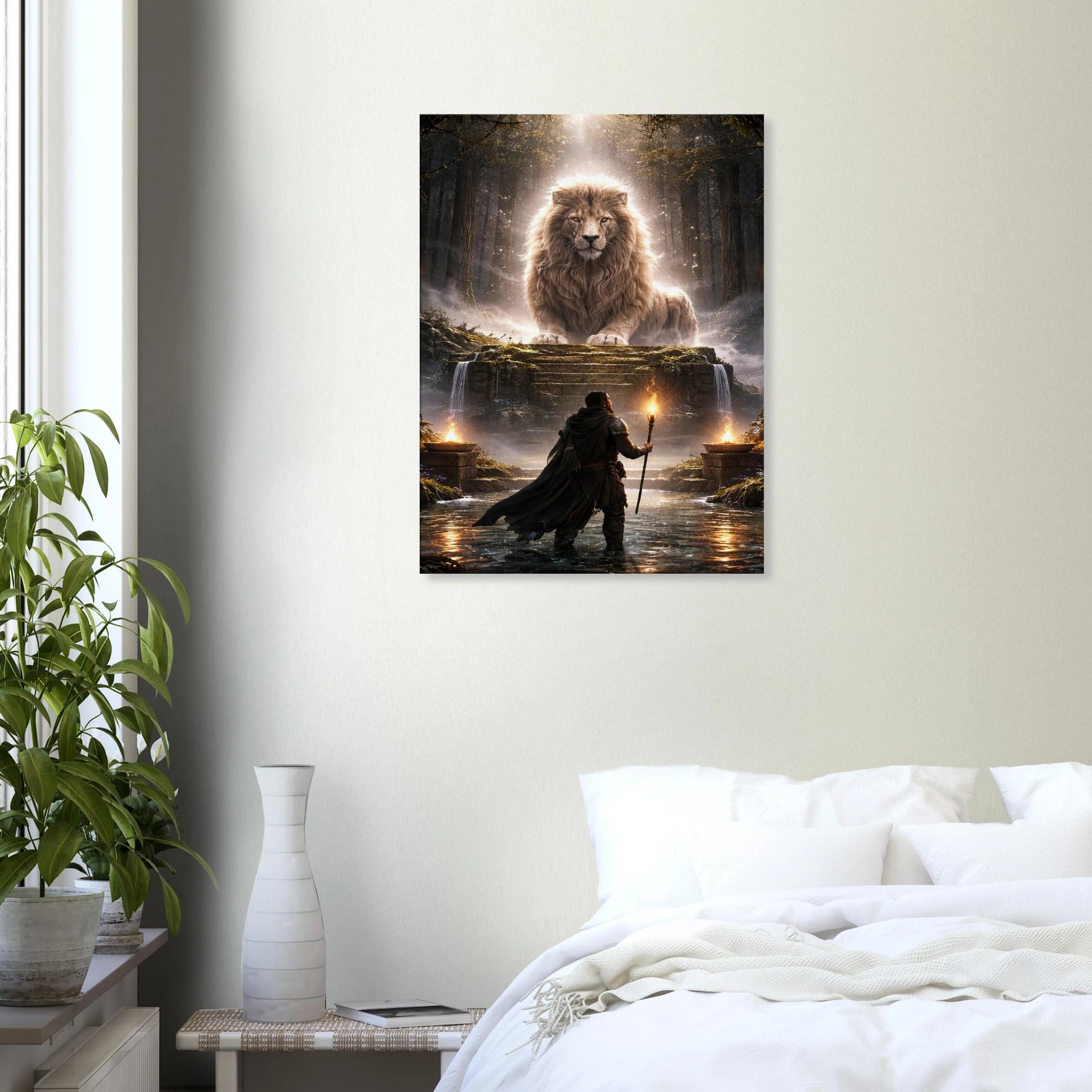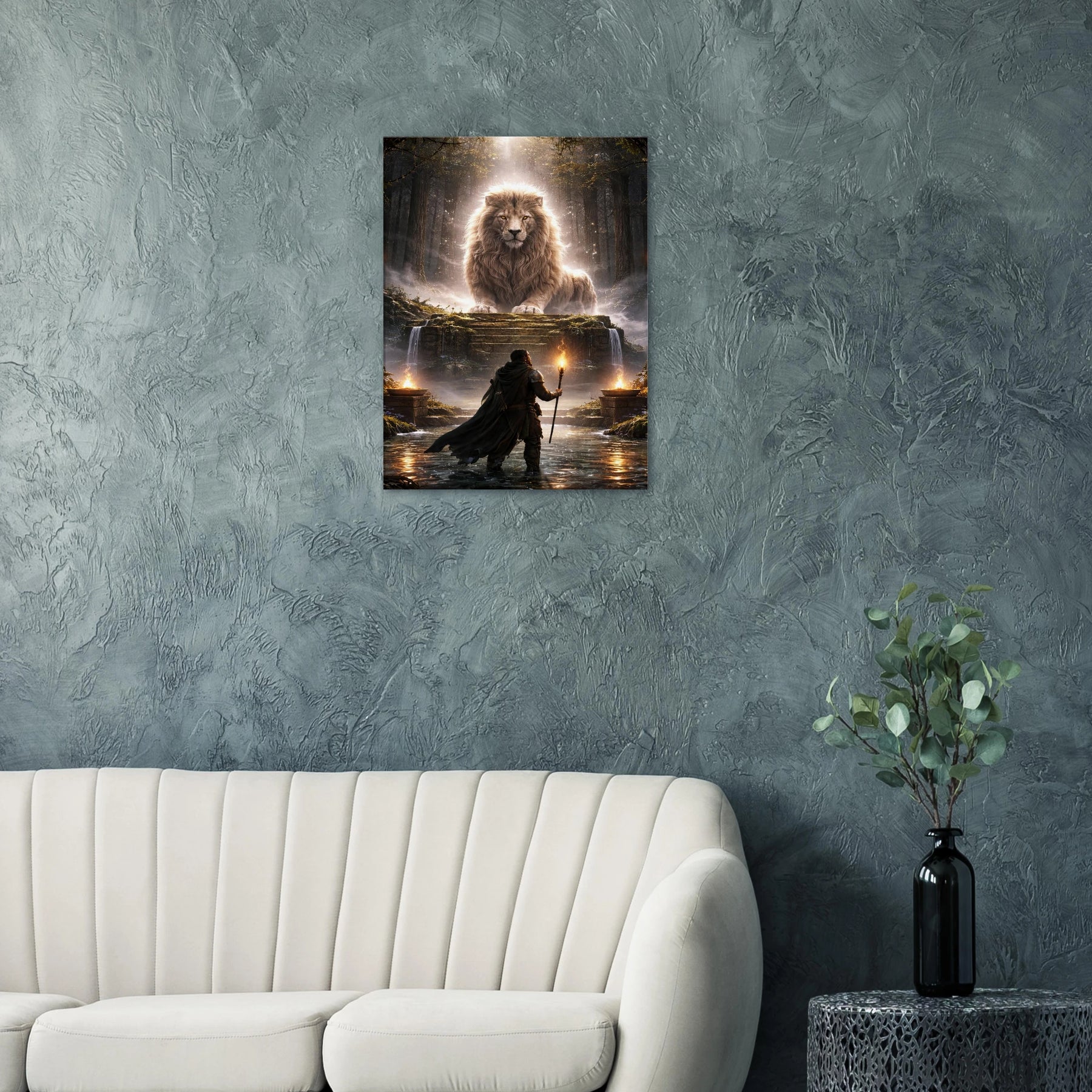 In Sanctum of the Silent Gods betrittst du keinen Ort – du überschreitest eine Grenze. Zwischen uralten Bäumen, verborgen im Nebel, offenbart sich ein Heiligtum, das nicht laut spricht, sondern tief wirkt. Der gewaltige Löwe ruht nicht einfach… er wacht. Seine Präsenz ist ruhig, unerschütterlich – wie eine Kraft, die nichts beweisen muss.