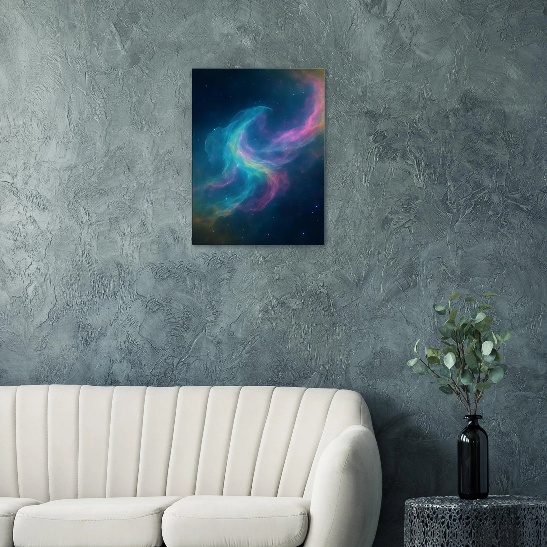 Astral Mirage ist ein kosmisches Flüstern in Farben. Eine leuchtende Illusion zwischen Raum und Zeit, geboren aus Licht und Fantasie. Die sanften Wellen in Türkis, Magenta und Gold scheinen sich schwerelos durch die Galaxie zu bewegen – wie ein Traum, der sich nicht greifen lässt, aber dennoch tief im Herzen bleibt. Dieses Bild schenkt dir das Gefühl, mit den Sternen zu schweben – weit weg von Raum, Alltag und Schwerkraft.