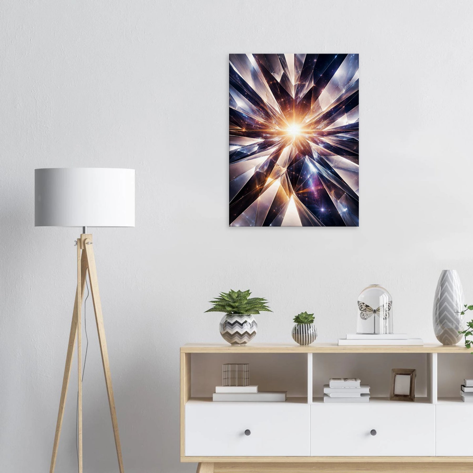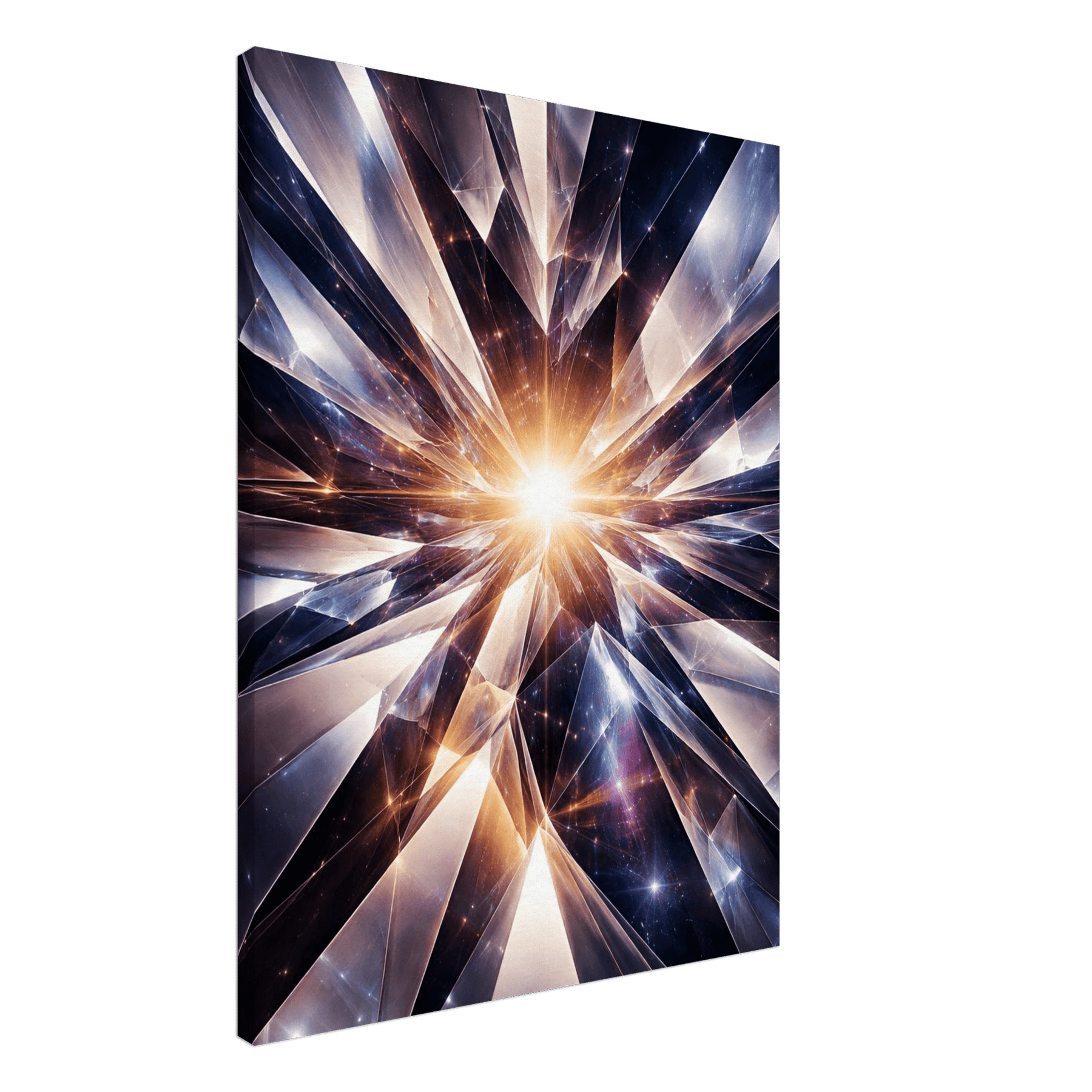 Wenn du vor Crystal Plane stehst, ist es, als würdest du in einen Raum aus Licht und Struktur eintreten. Scharf geschnittene Kristallflächen brechen das strahlende Zentrum in unzählige Facetten – klar, präzise und zugleich voller Magie. Dieses Bild fühlt sich an wie ein Augenblick vollkommener Erkenntnis, in dem sich Ordnung und Schönheit begegnen.