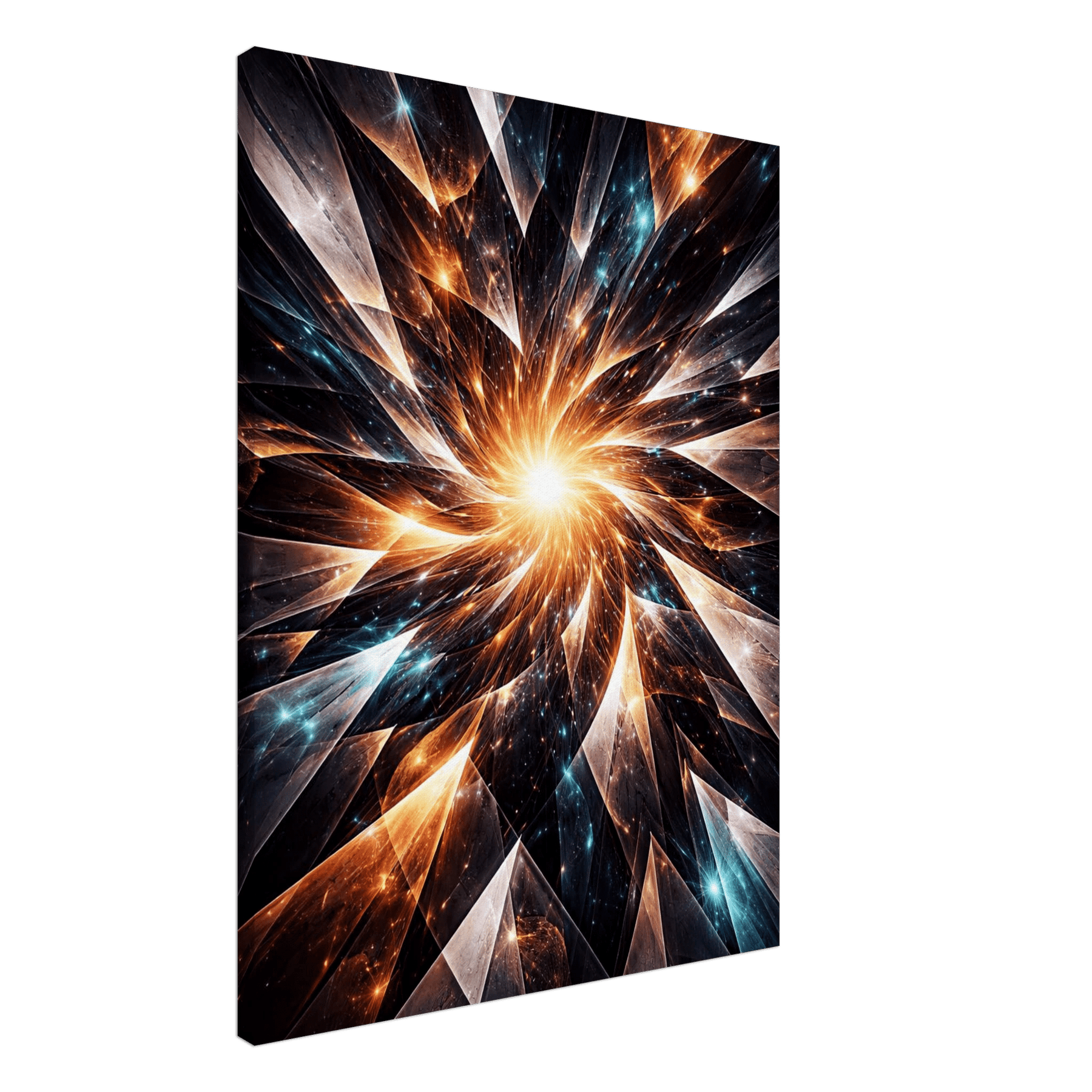 Wenn du vor Fragmented Flow stehst, ist es, als würdest du den Moment erleben, in dem Gegensätze miteinander verschmelzen. Splitter aus Licht und Dunkelheit brechen auseinander und finden doch gemeinsam einen Rhythmus. Aus der kraftvollen Mitte strömt Energie nach außen – roh, lebendig und voller Ausdruck. Dieses Bild fühlt sich nicht glatt an, sondern ehrlich. Wie Bewegung, die aus Veränderung entsteht.